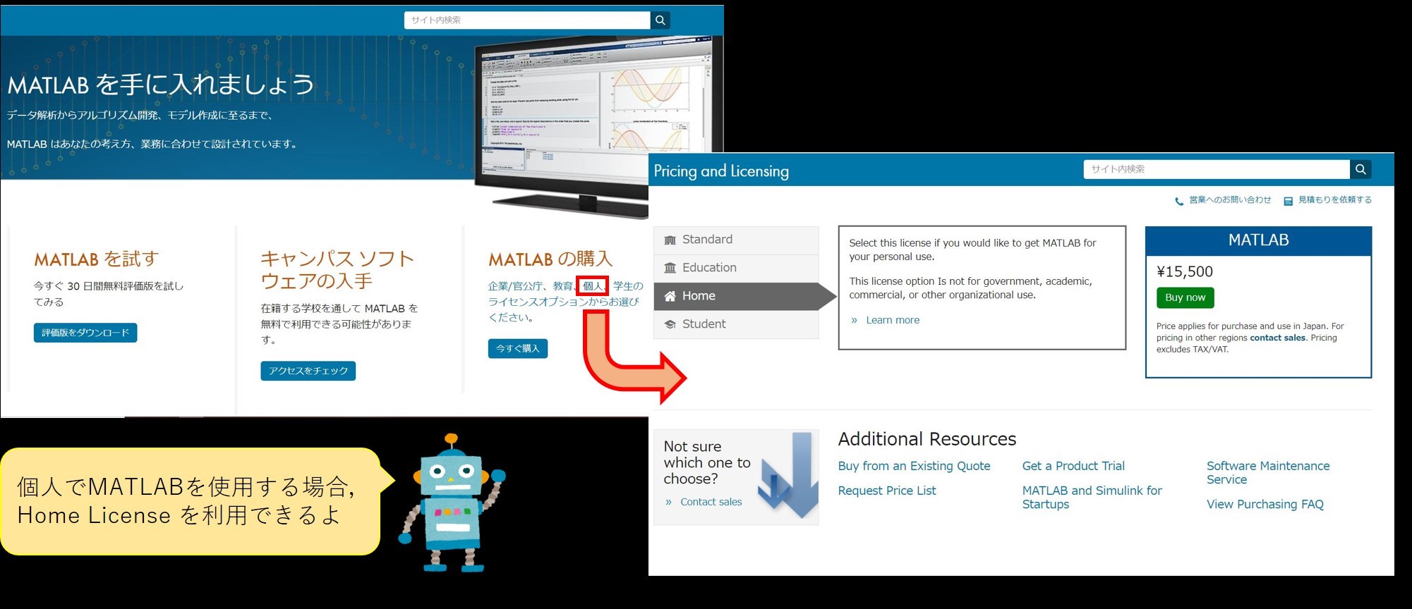 MATLABは企業用や教育用他のeditionがありますが,個人で使う場合であれば,Home Licenseが利用できます.