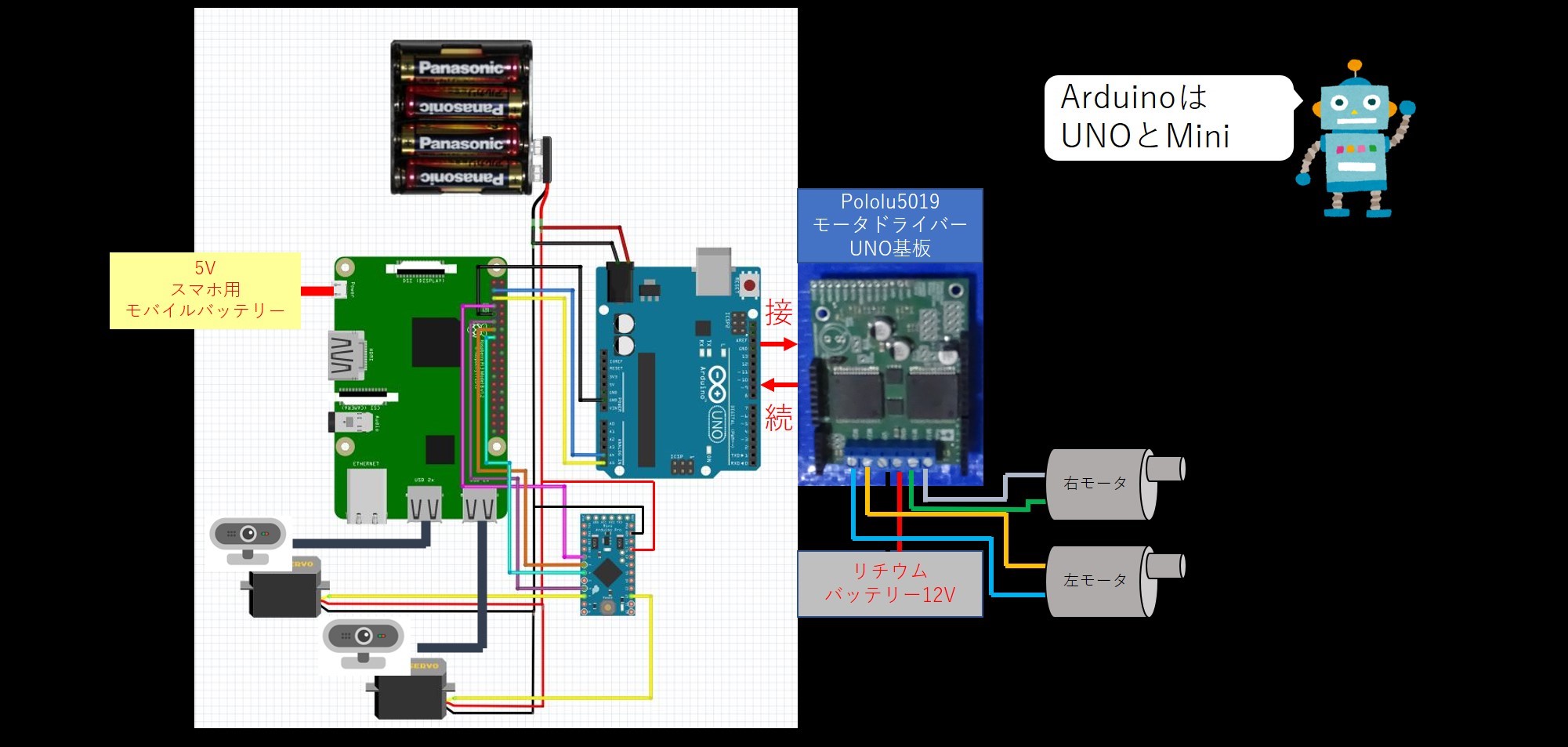 ⑥Arduinoは操作量を受け取り,モータードライバーへ信号を送り,モータを駆動します.