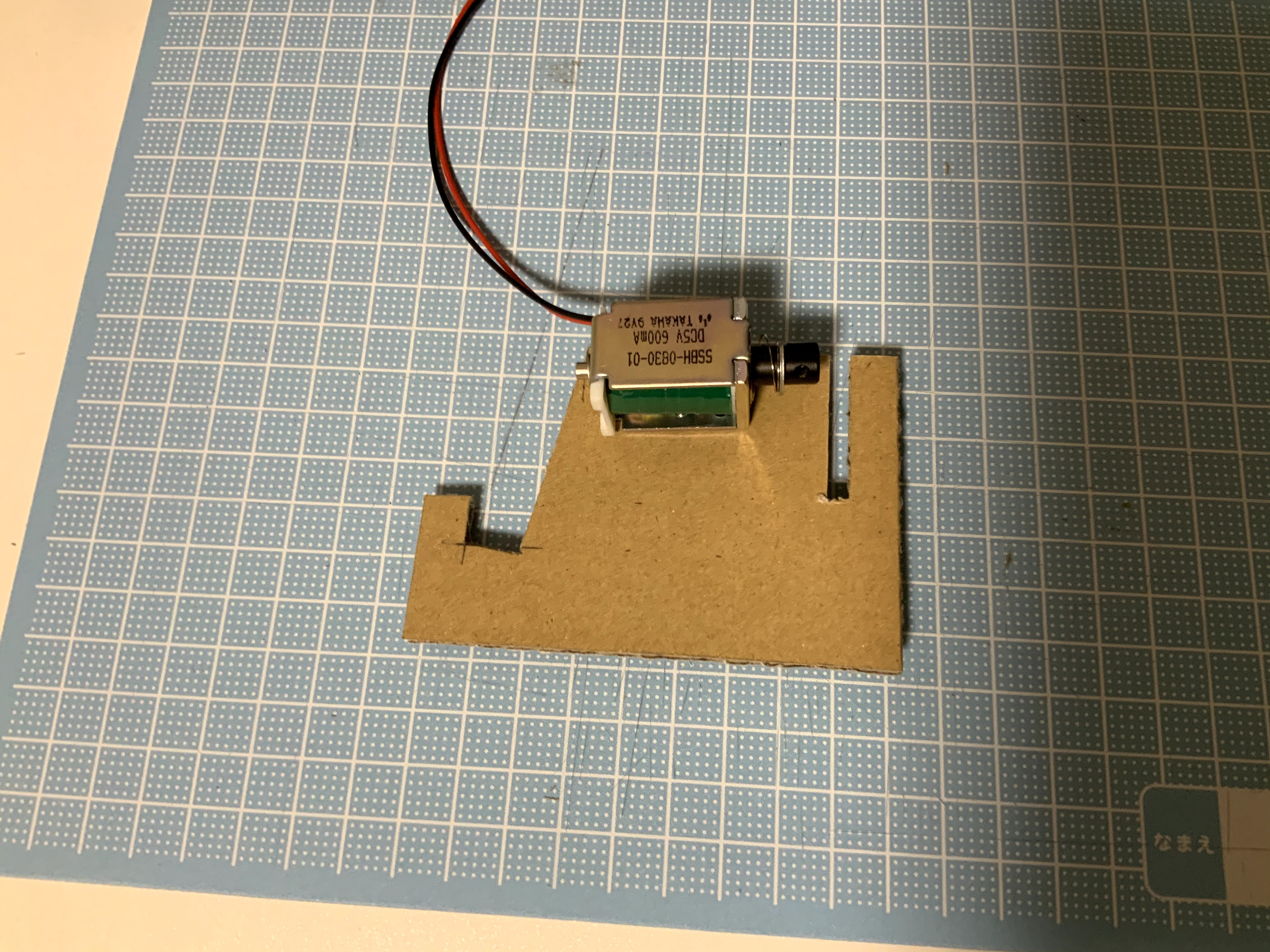 5Vソレノイドには、コントローラー回路もついており、スマホの充電器などからmicroUSB端子で給電し、スイッチを押せば動くようになっています。