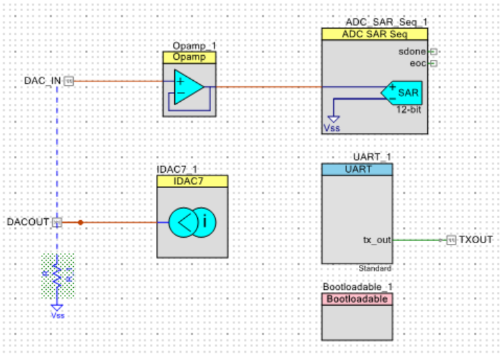 UARTのTXを利用することでADコンバータのカウント数などをPCに出力することができるので、ICの動作をオシロスコープなしで読み取ることができます。またDAコンバータは任意の波形を出すことができるので、ファンクションジェネレータの代わりになります。