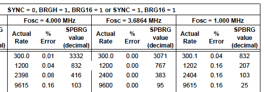 SP1BRGL=25; // 25 (9600 at Fosc=1MHz)