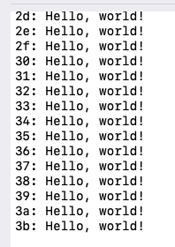 printf("%02x: Hello, world!\n",cnt++);