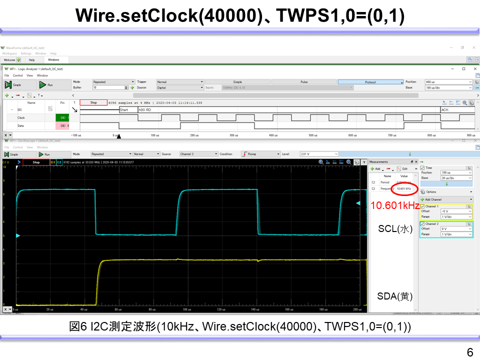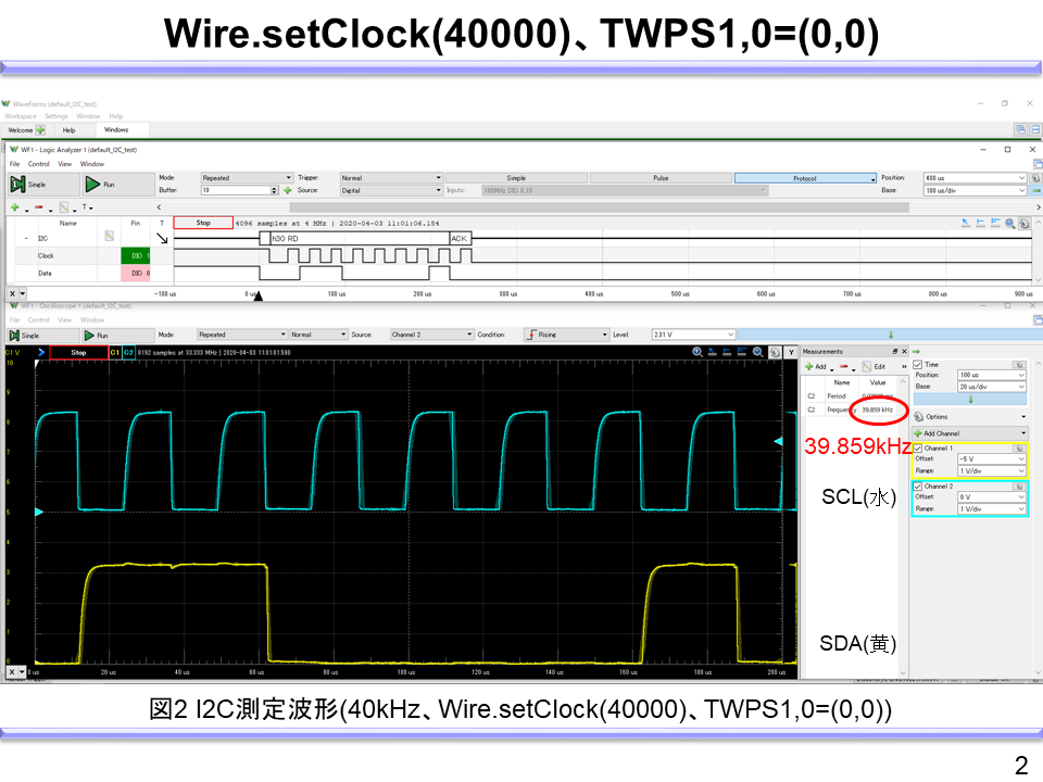 また、fSCLを40kHzに下げる場合の記述例と測定波形は以下となる。