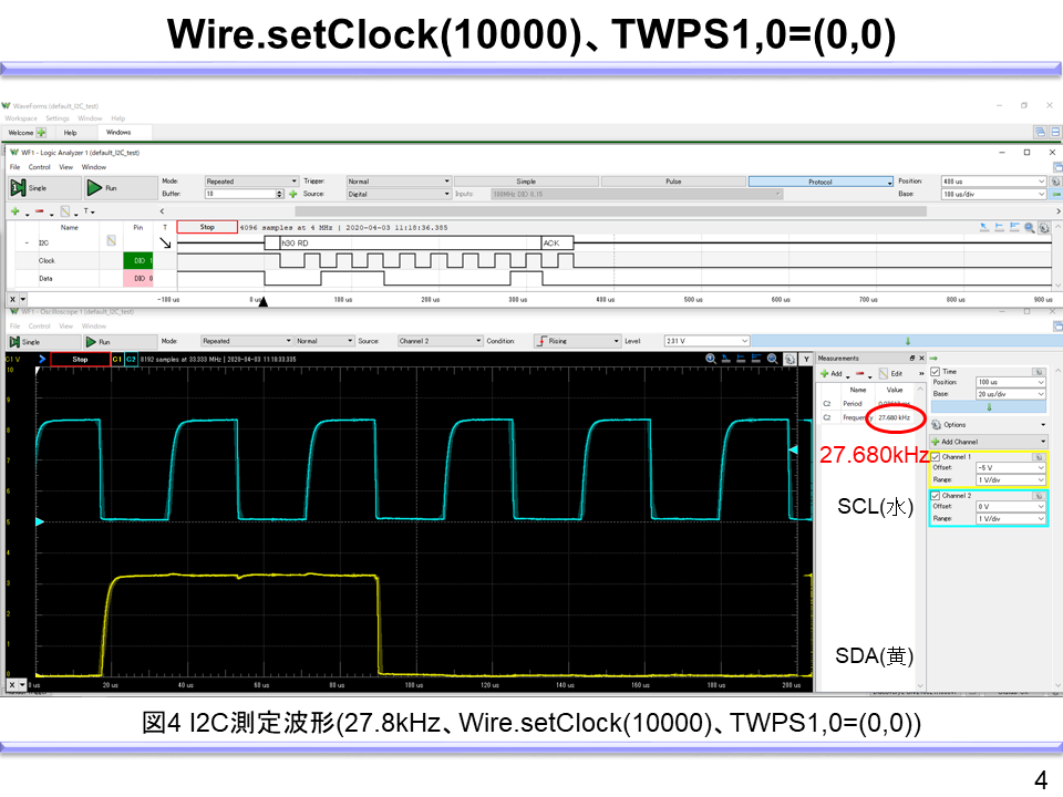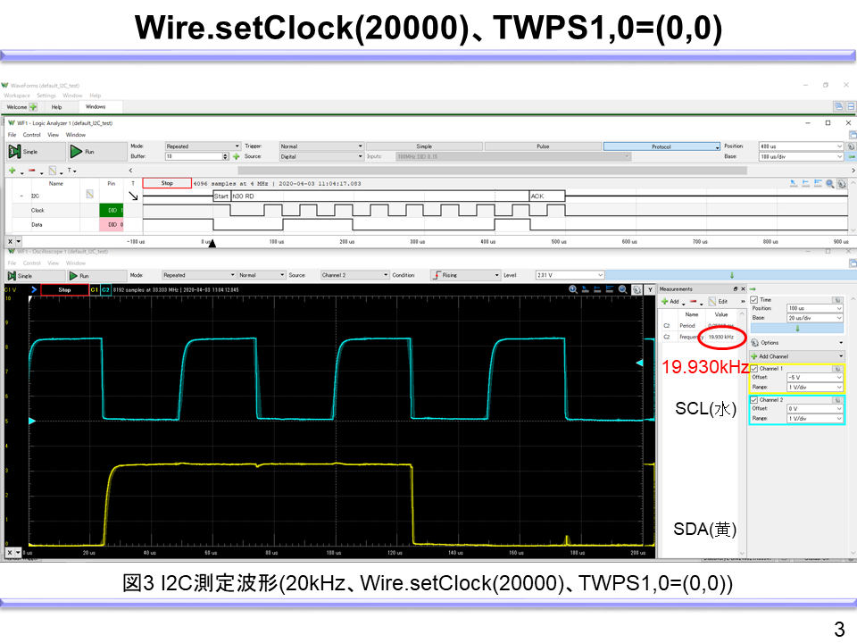 同様に、fSCLを20kHzに下げる場合の記述例と測定波形は以下となる。