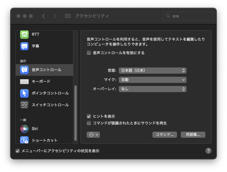 おまけで、Macの場合の音声コントロールの設定方法を説明します。