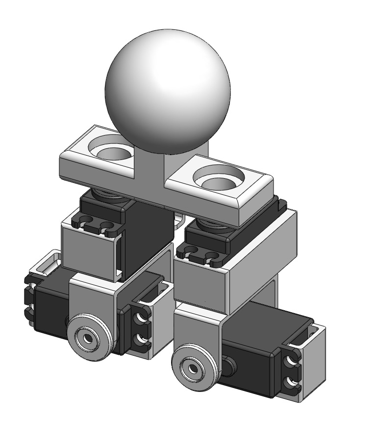 今回用意した様なロボットの場合、図中上部にある球の様な部分にそれなりの重量が無いと安定して歩くことが出来ません。目安としてはロボットの重心がサーボモーターよりも上に来る様な重りを乗せます。