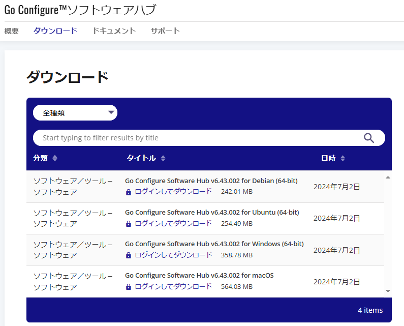 下記のURLをクリックすると、「Go Configure™ソフトウェアハブ」のページが開きます。