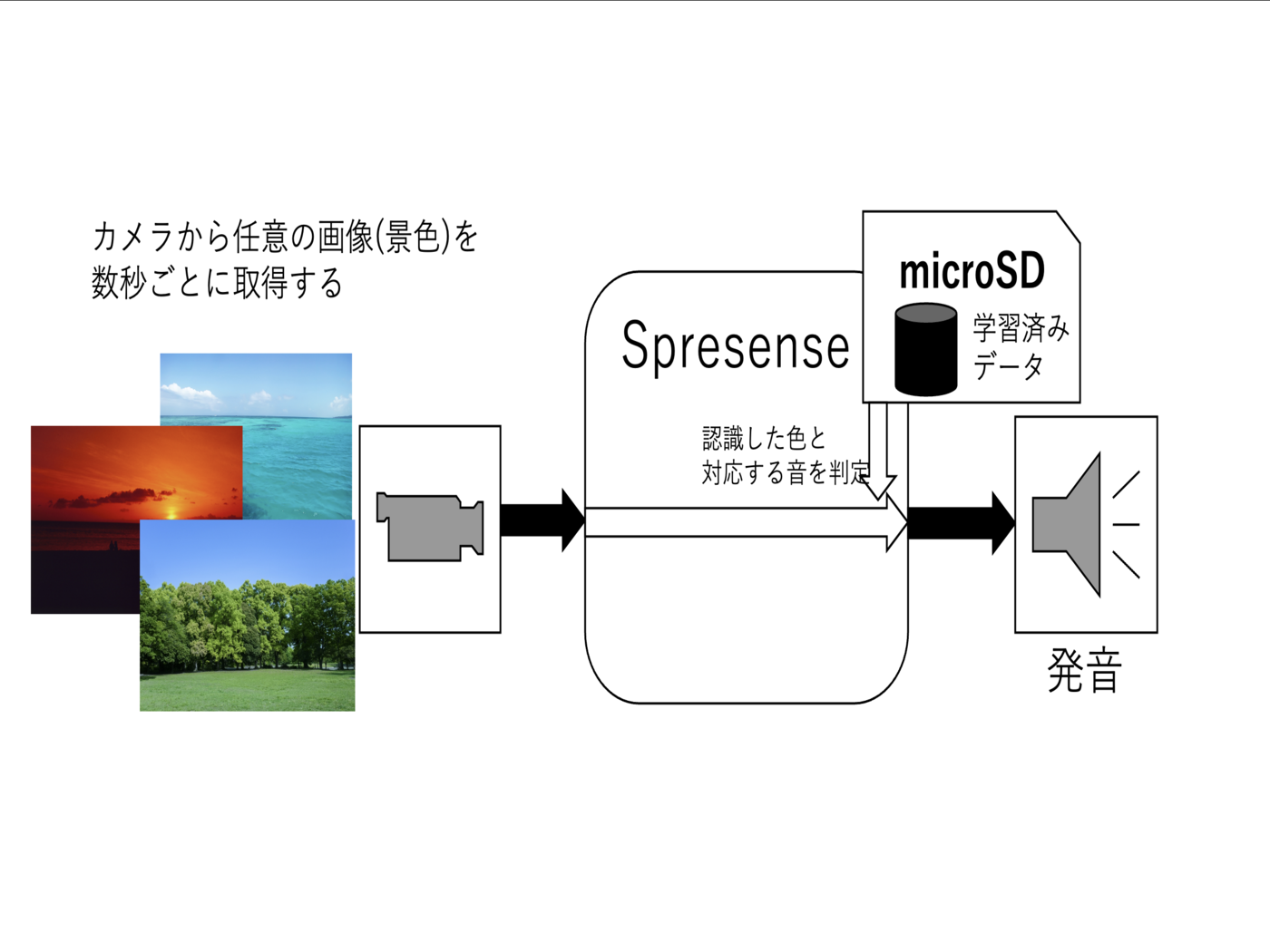 3.認識した結果から色が判定され、それに対応する音が決定されます