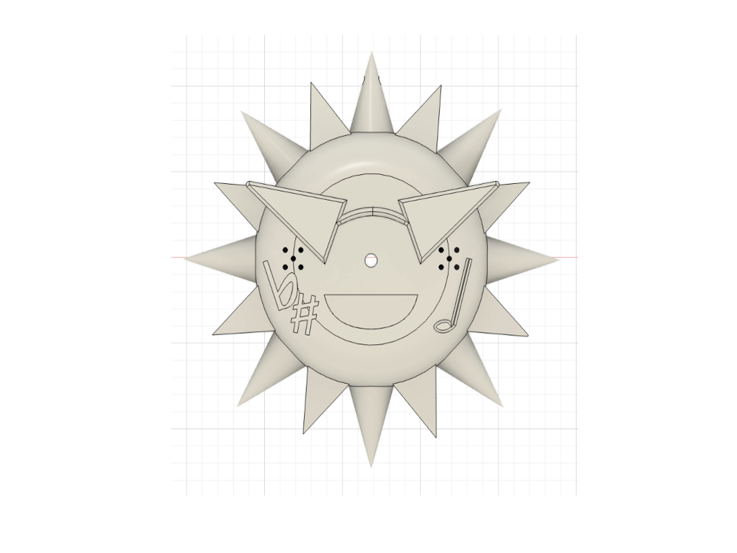 この楽器のコンセプトは 色を音に変換する ことです。色を認識するためには光が不可欠な要素であるため、光を照らしてくれる太陽をモチーフにしたデザインを採用しました。