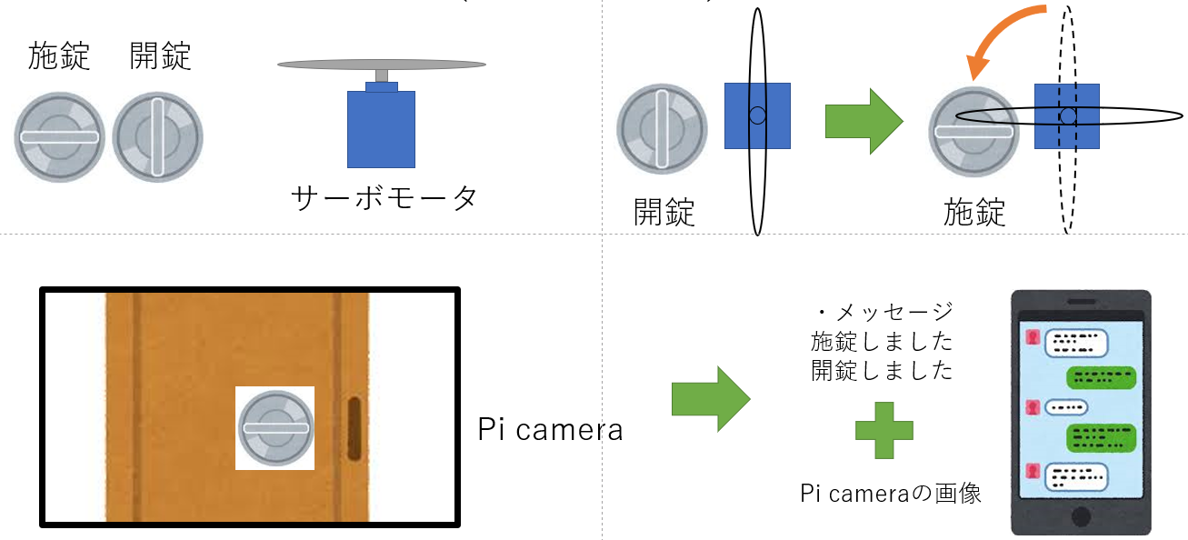 • サーボモータで鍵の状態が変化するとカメラで撮影する
