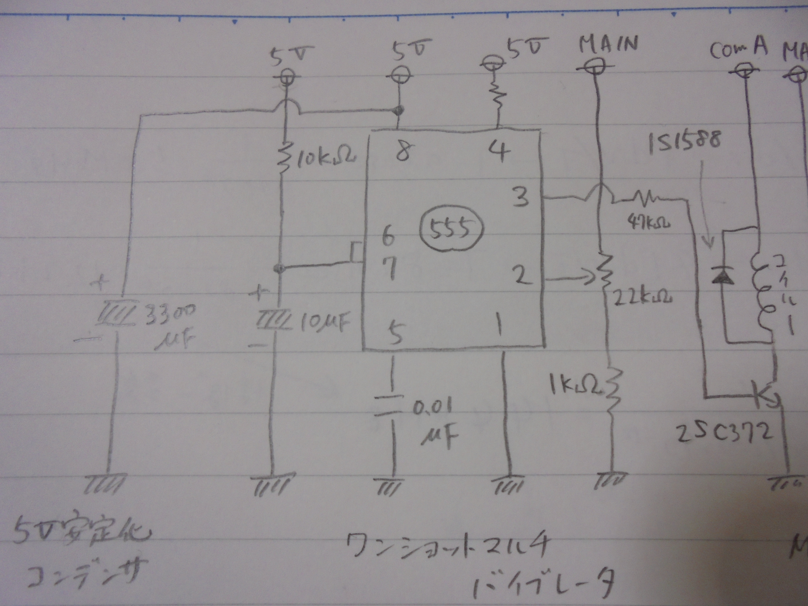 ・タイマーIC555…TTL版だと数mAを消費するので、C-MOS版を使用。