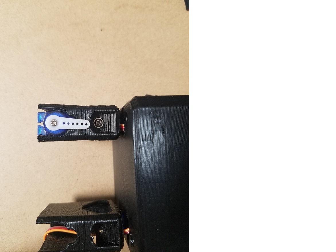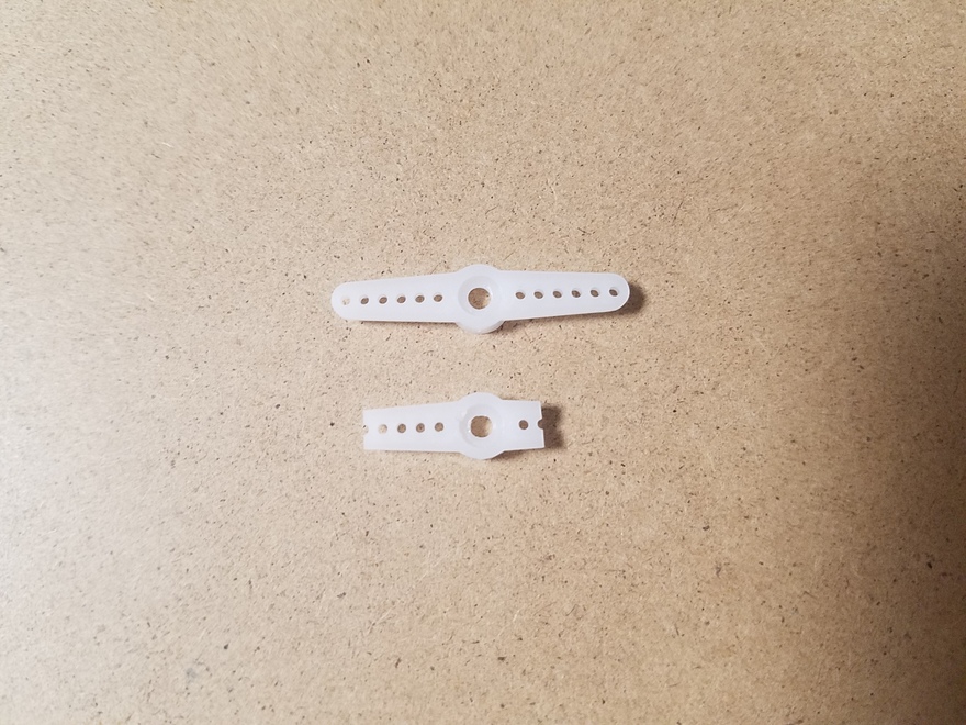 まず足側のサーボモーターに写真のような付属サーボホーンを取り付け、同じく付属ネジで固定します。