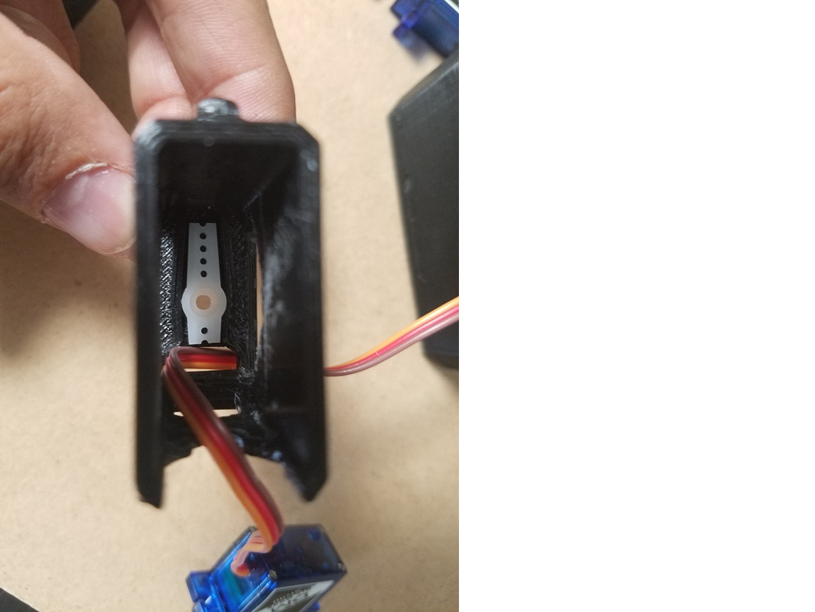 そしてサーボモーターを脚パーツのくぼみに合わせはめ込みます。