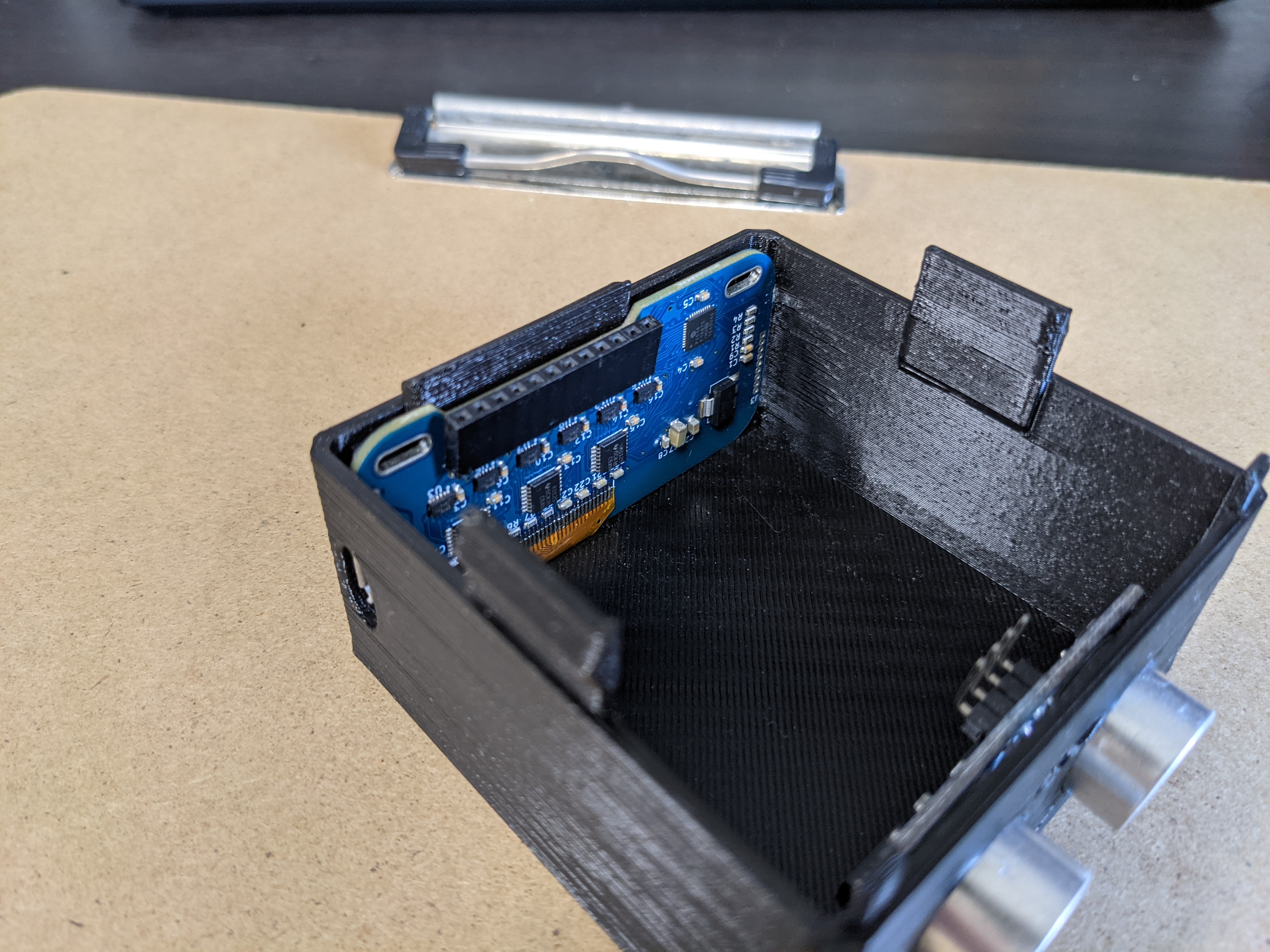 また筐体についてもギリギリobnizが収まらないサイズだったため当初ボディを削っていたのですが、ごじさん(@goji2100)になんとobniz用3Dプリントデータを作成いただきました。