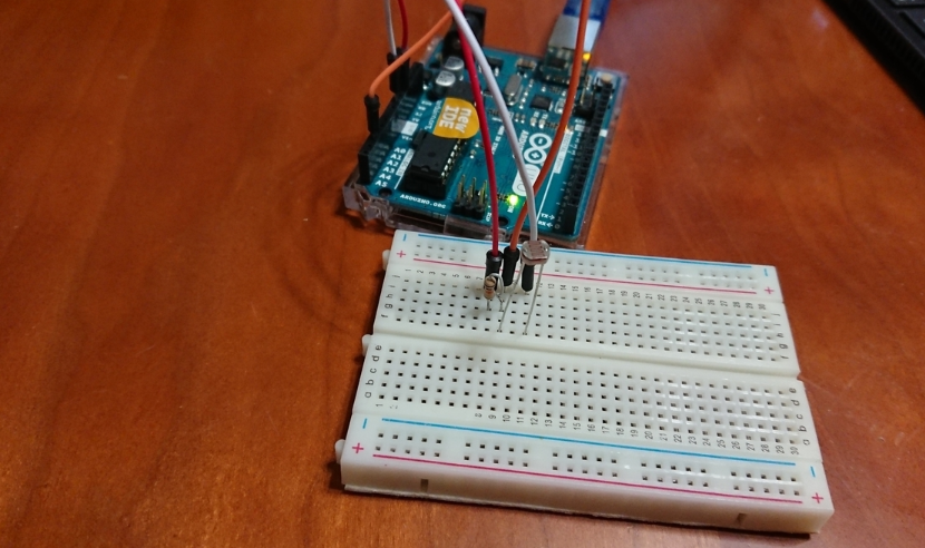 明るいときと暗いときでのAnalog出力の差がなるべく大きくなる抵抗値を選びます。