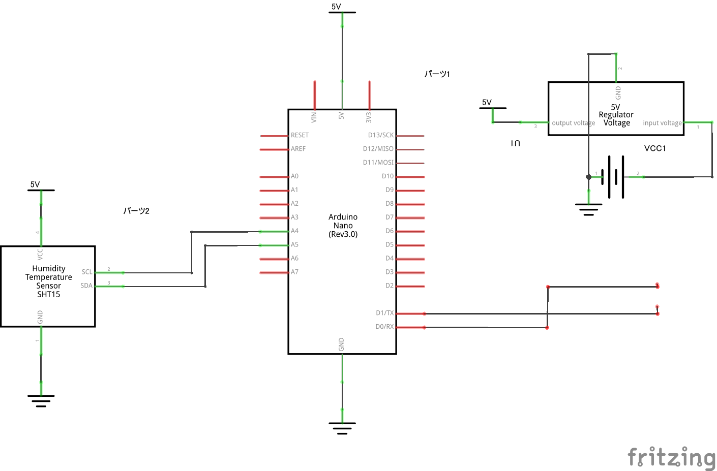 Obnizで直接センサーを制御できれば良かったのですが、温度センサ、距離センサともにobniz用のライブラリなどはないらしくプログラムが大変そうだったのでArduinoNANOで読み取り、UARTでobnizと通信する形にしています。