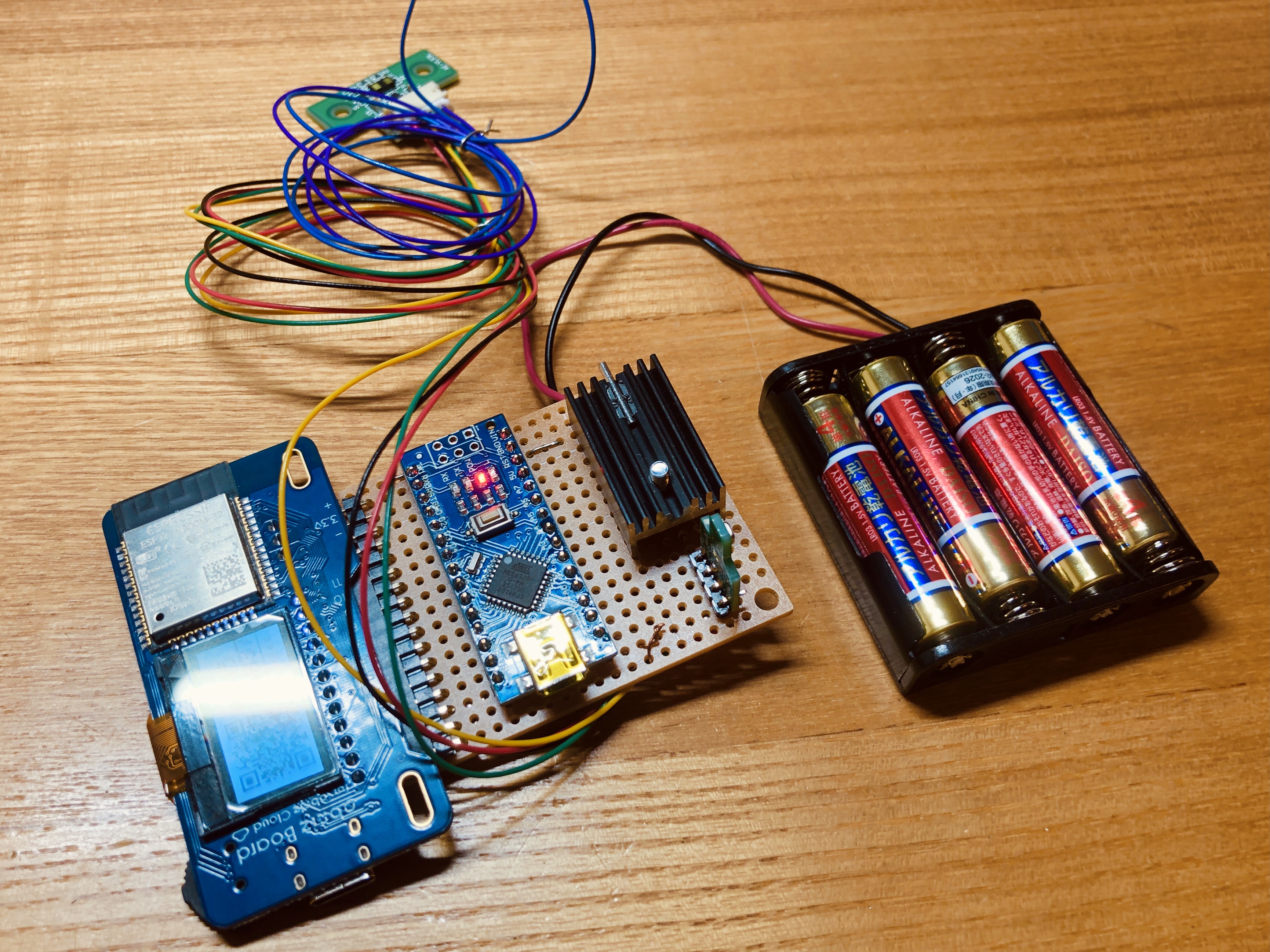 電源は風呂の中ということもありコンセントからの給電は難しいので電池で給電しています。設計的にすぐになくなってしまうと思うので次回への課題です。