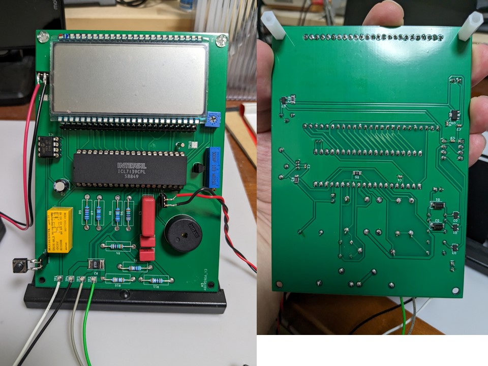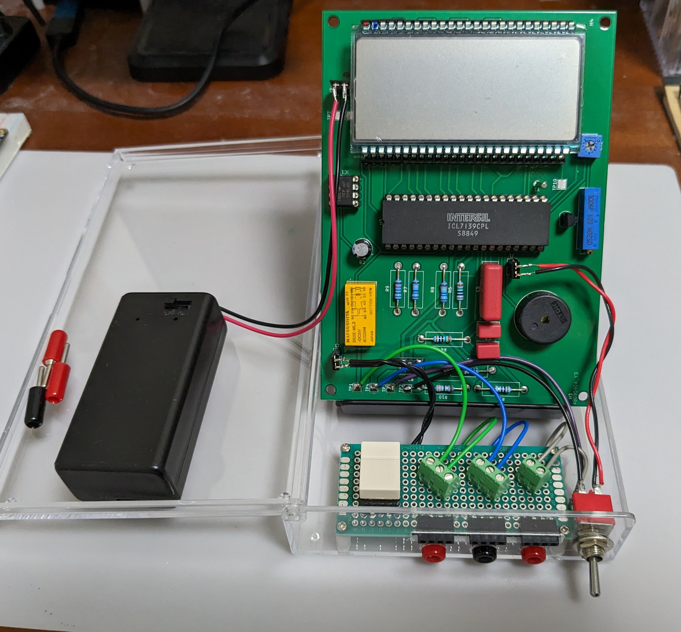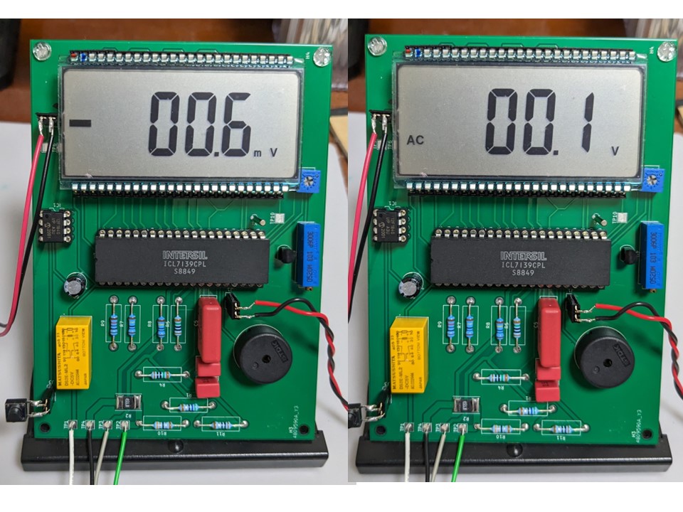 基本機能はICL7139 + LCDで賄えるのですが、モード切替の部分をボタン一つで切り替えできるようにPICを使ってコントロールする構成にしました。プッシュボタンを押すことで、