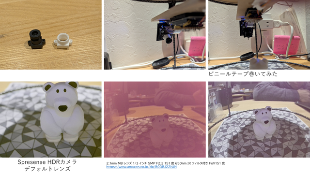 3Dプリンタで作成したレンズホルダはある程度IR光を透過してしまったため、そのままでは画像が赤みがかってしまう。