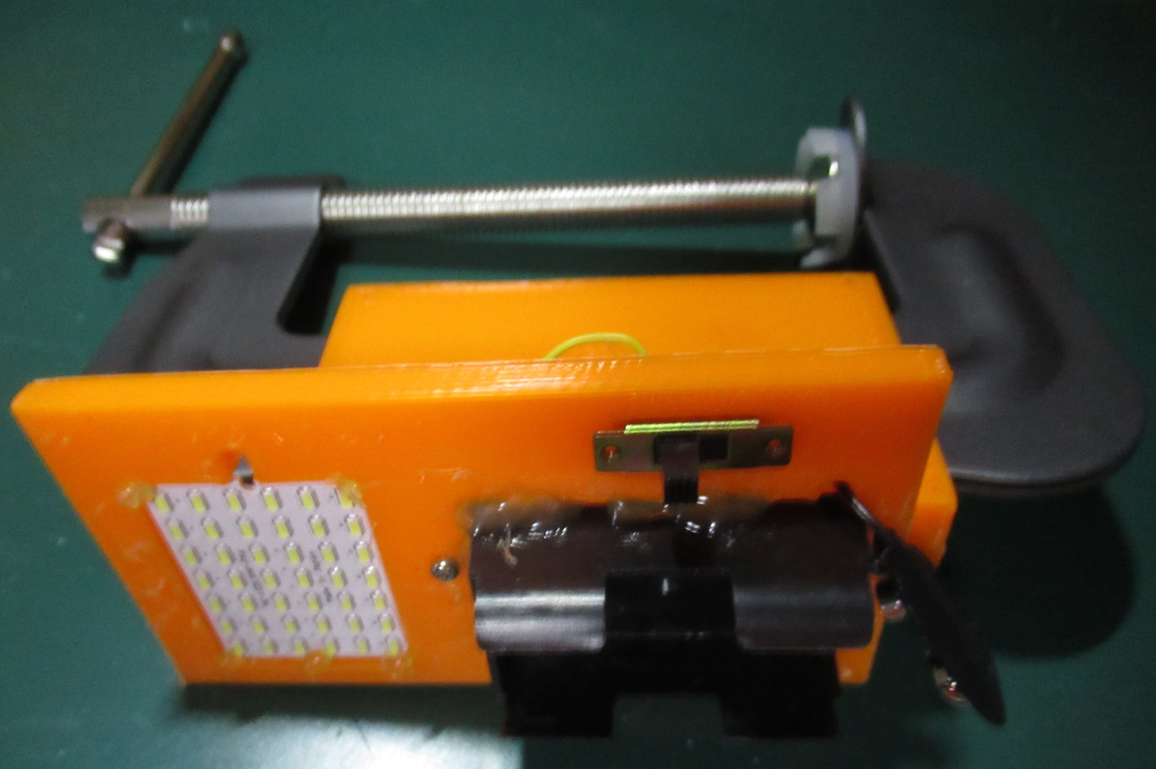 日曜大工で利用するクランプに,秋月電子で販売されているLED基盤,電池,スイッチを装着しています.