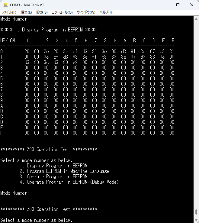 また、過去に書き込んだプログラムの確認や、プログラムの書き込みの成否を確認するために、EEPROMの読み出し機能を実装した。