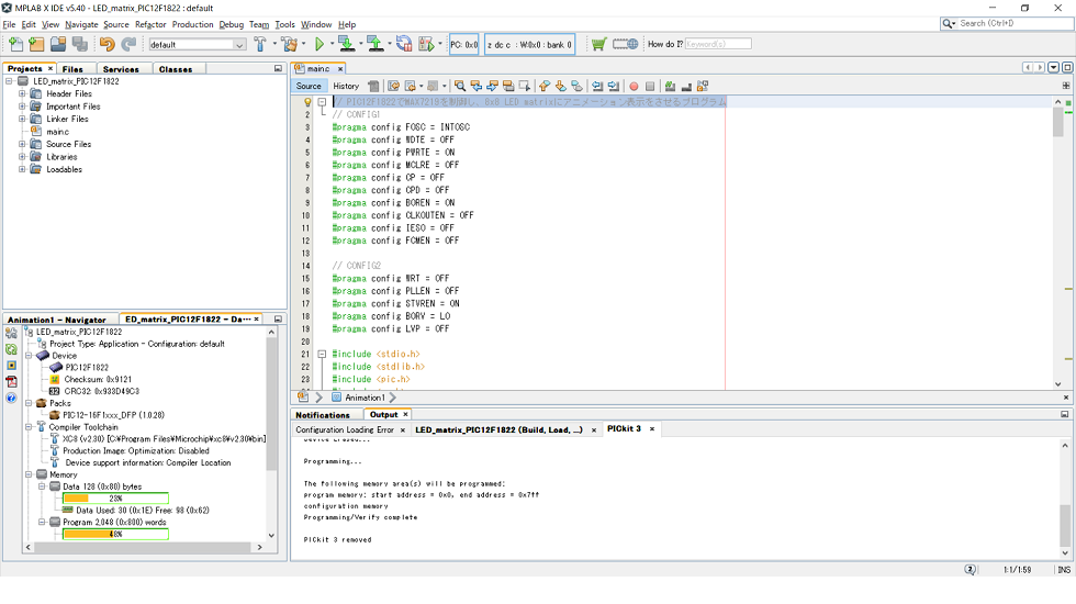 ※ Microchip MPLAB X IDE v5.40、Microchip MPLAB® XC8 Compiler v2.30で動作確認しています。