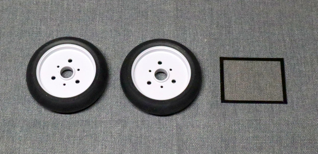 タイヤはタミヤのナロータイヤ(58mm径)です。また、デザインの都合でLCDパネルより筐体の開口部が大きいため、厚さ1mmの透明アクリル板に裏面から黒枠を塗装したパネルを作成しました。