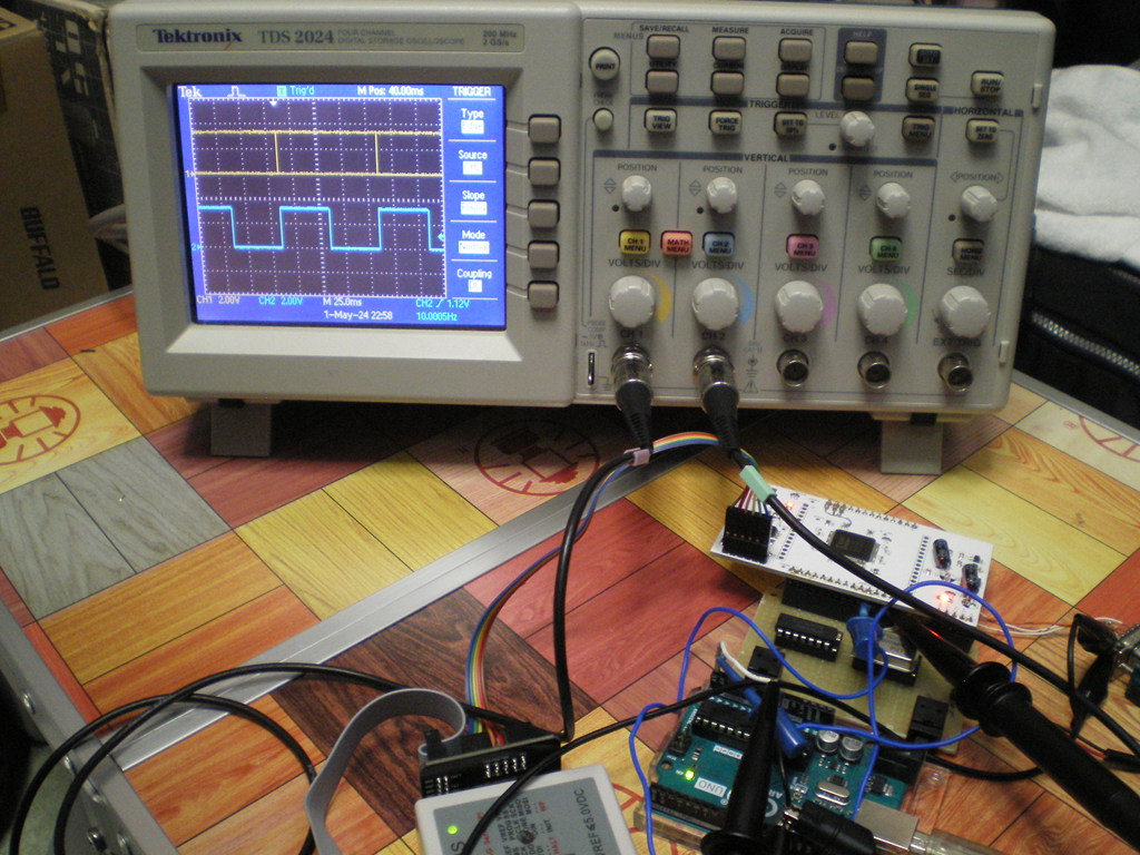 ではどうやってそのパルスを作るかというところですが、対向もArduinoだとさすがに検証にならないです。
