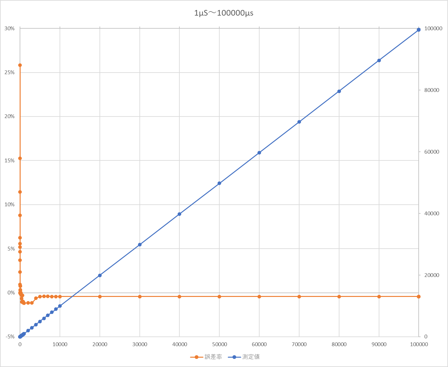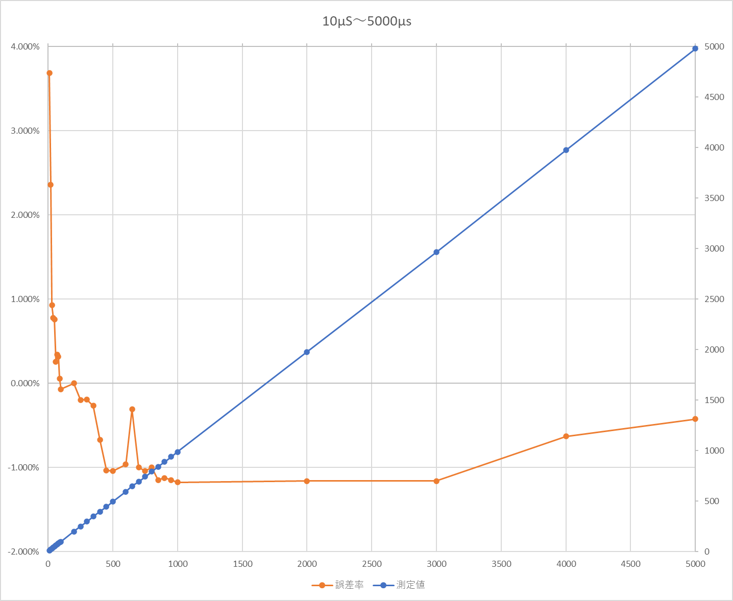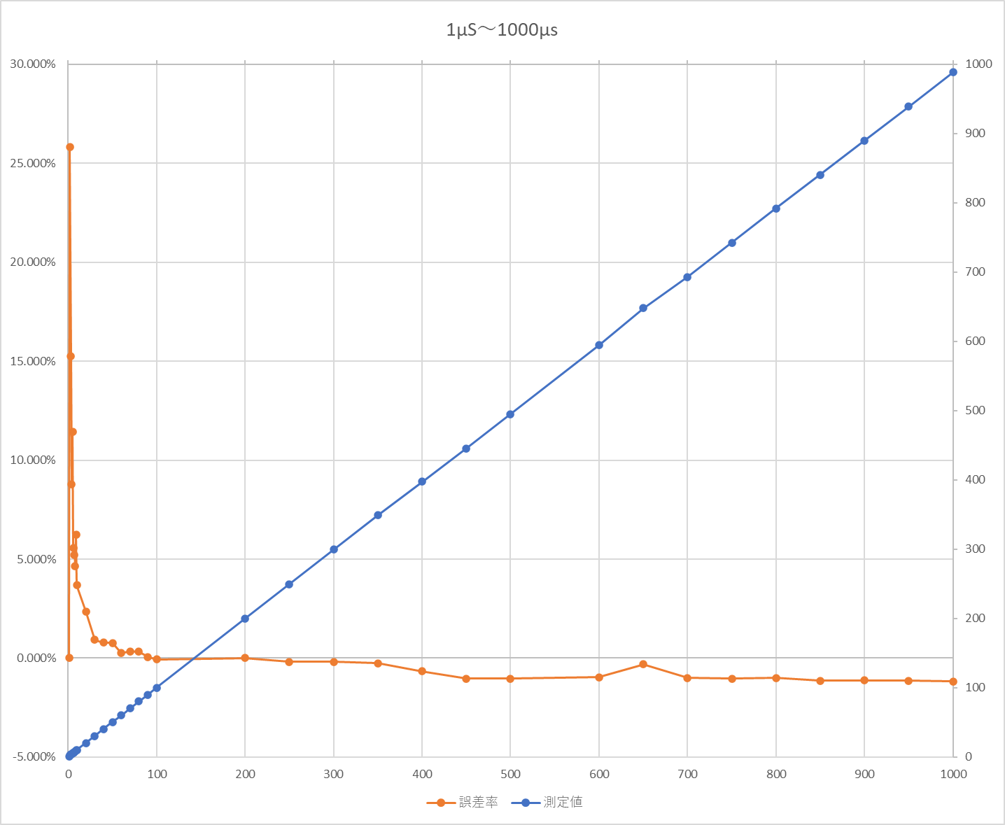 ・1000μ秒以下あたりから誤差が大きくなってきます。