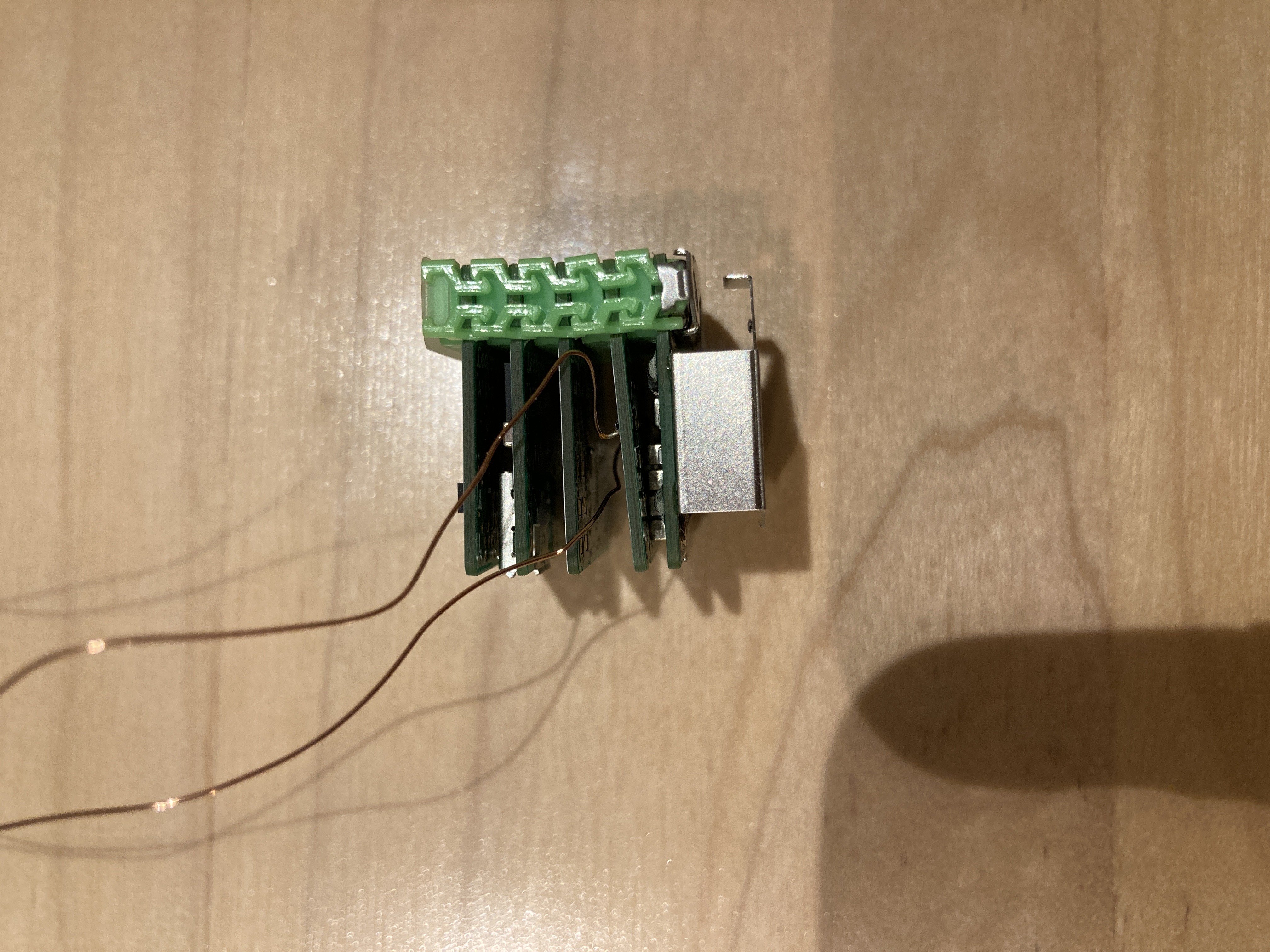 IO拡張用のリーフ(AX02 29 pin)にポリウレタン銅線をはんだづけし、抵抗・LEDを接続します。