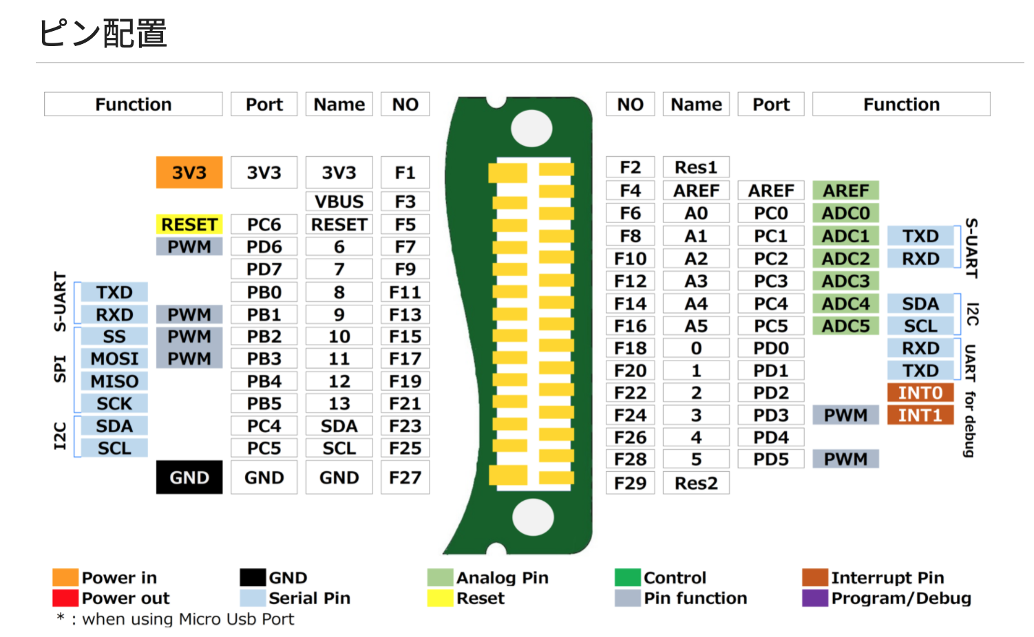 のちのち機能追加したときに使いたい機能が既に使われてしまっている、ということがないように兼用機能がないピンを選択しました(※)。