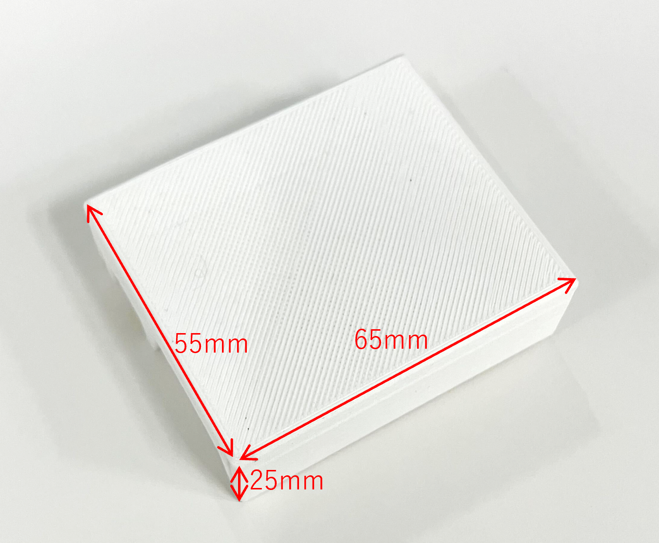 幅:55mm,奥行:65mm,高さ:25mmの直方体にすべてが収まります。