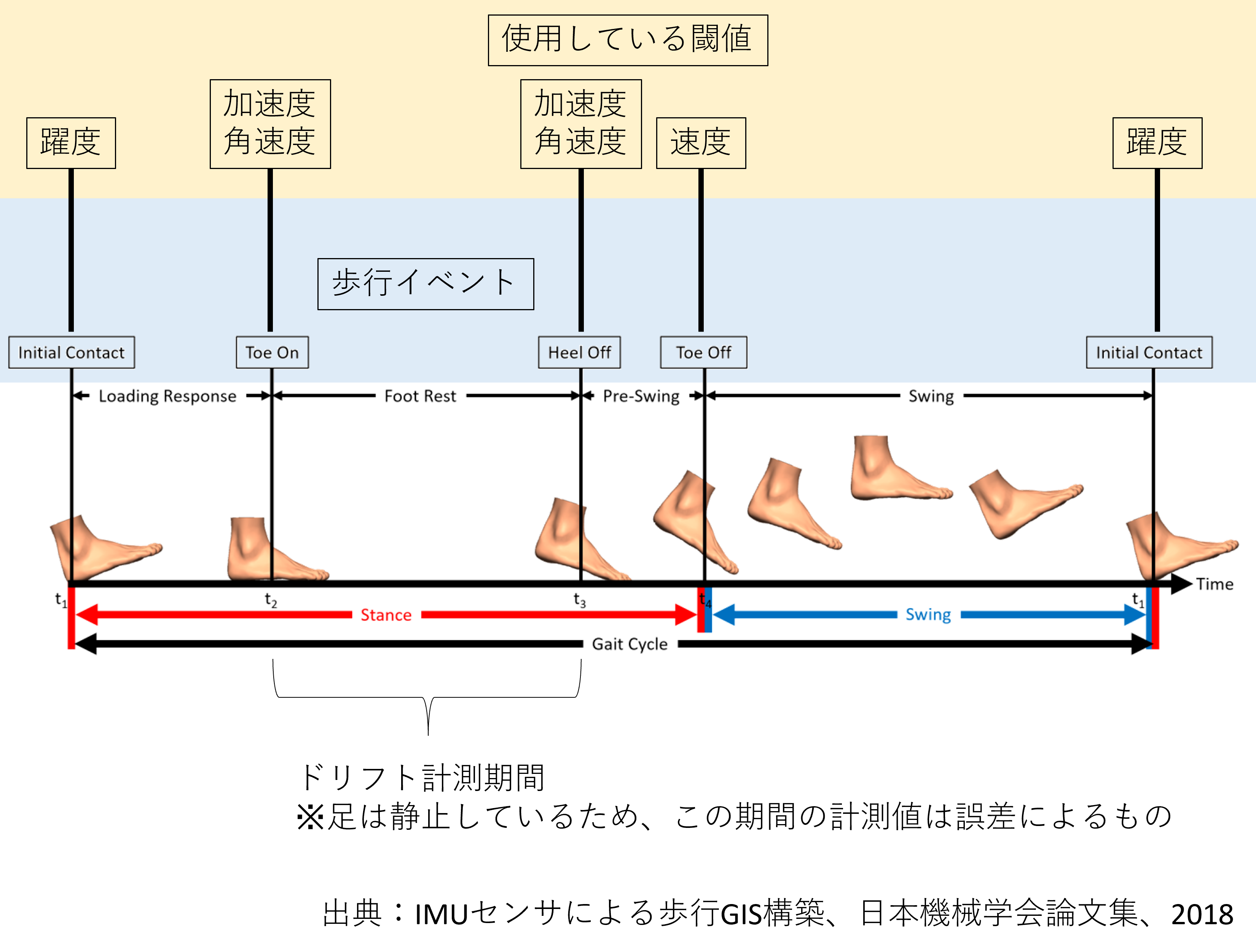 下図の「Initial Contact」を躍度を用いて検出することで、足の接地を検出しています。
