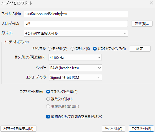 41.1KHz 16bit (CDと同じクオリティ) ですけど Track数 を変えています
