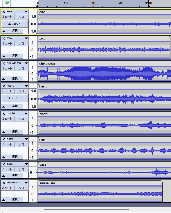 インターネットに上に存在する "無料環境音" などを持ってきて モノラルにしてから