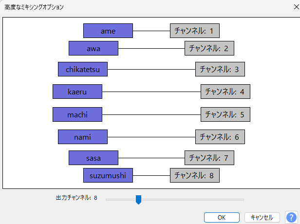 ご自分で モノラル(1Track) なファイルを8個用意するか