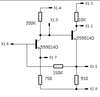 よしんばMC-4080が故障して交換品が無い場合は、下の等価回路で示した抵抗とSS9014Dのスペックに似た代替品を用意すると良いかもしれません。