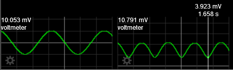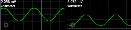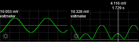 この整流回路はオペアンプの仕様上、あまりに電流が微弱だとオフセット電圧と相殺されて整流を行わなくなります。オフセット電圧調整無しの整流回路部に2mVの交流を入力してみても、周波数が2倍になっておらず整流していないことがわかります。