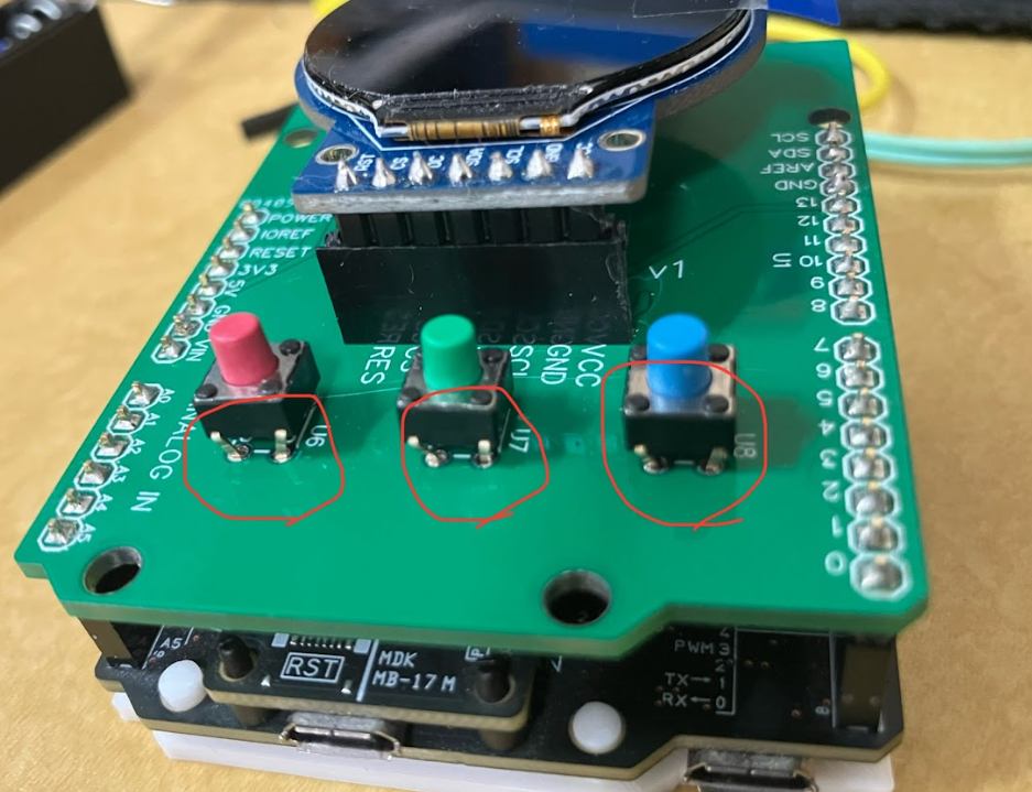 円形ディスプレイおよびタクトSWと拡張ボードの接続表は以下となります。