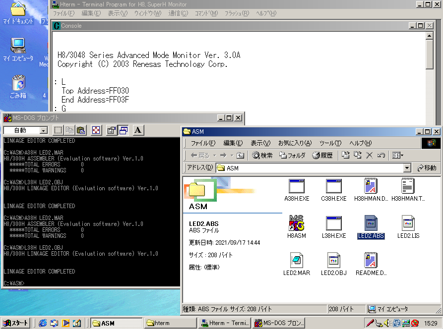vmware上のWindows Meから操作しました。これならHtermだけでなくF-ZTATを用いて3048にプログラムを書き込む事も可能です。