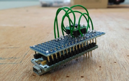 次にArduino nanoと加速度センサをくっつけます。ついでにサーボモータを接続するピンもくっつけます。