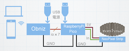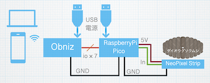 obniz io1-io7をRaspberryPi PICOのGP11-GP17に接続する