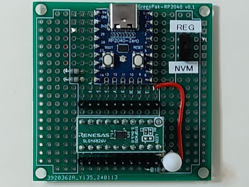 また、レジスタへの書き込みと NVM への書き込みを切り替えるためのスイッチを RP2040-Zero 側に接続した。