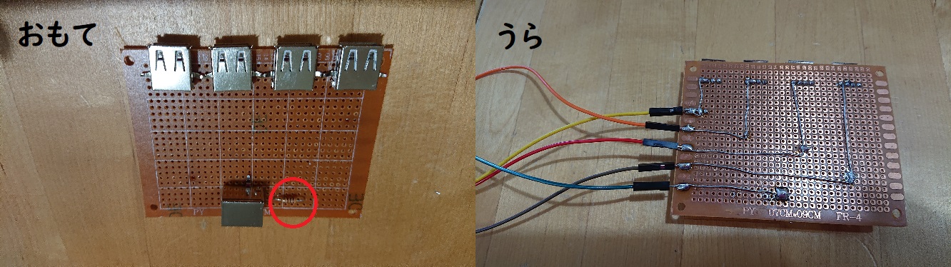 ※上記赤丸をつけた箇所の抵抗は不要だったため後で外しています。