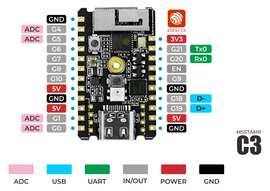手元に余っているM5Stamp C3でコントロールしてみます。