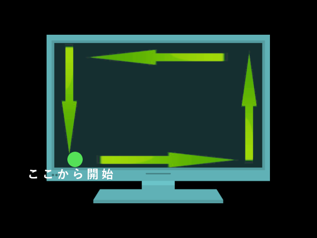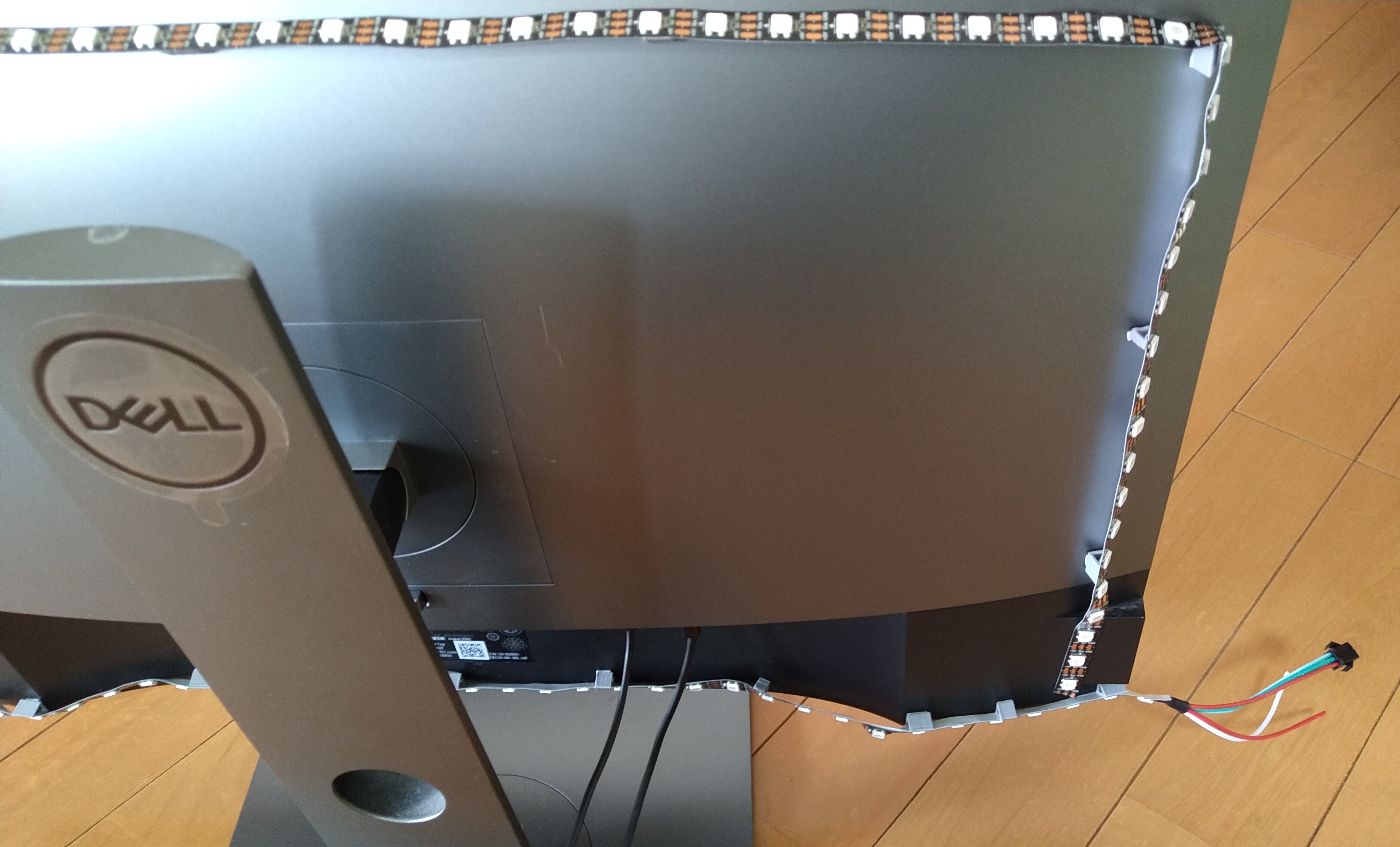 ディスプレイの裏面に、テープライトは正面から見て左下から貼り付けます