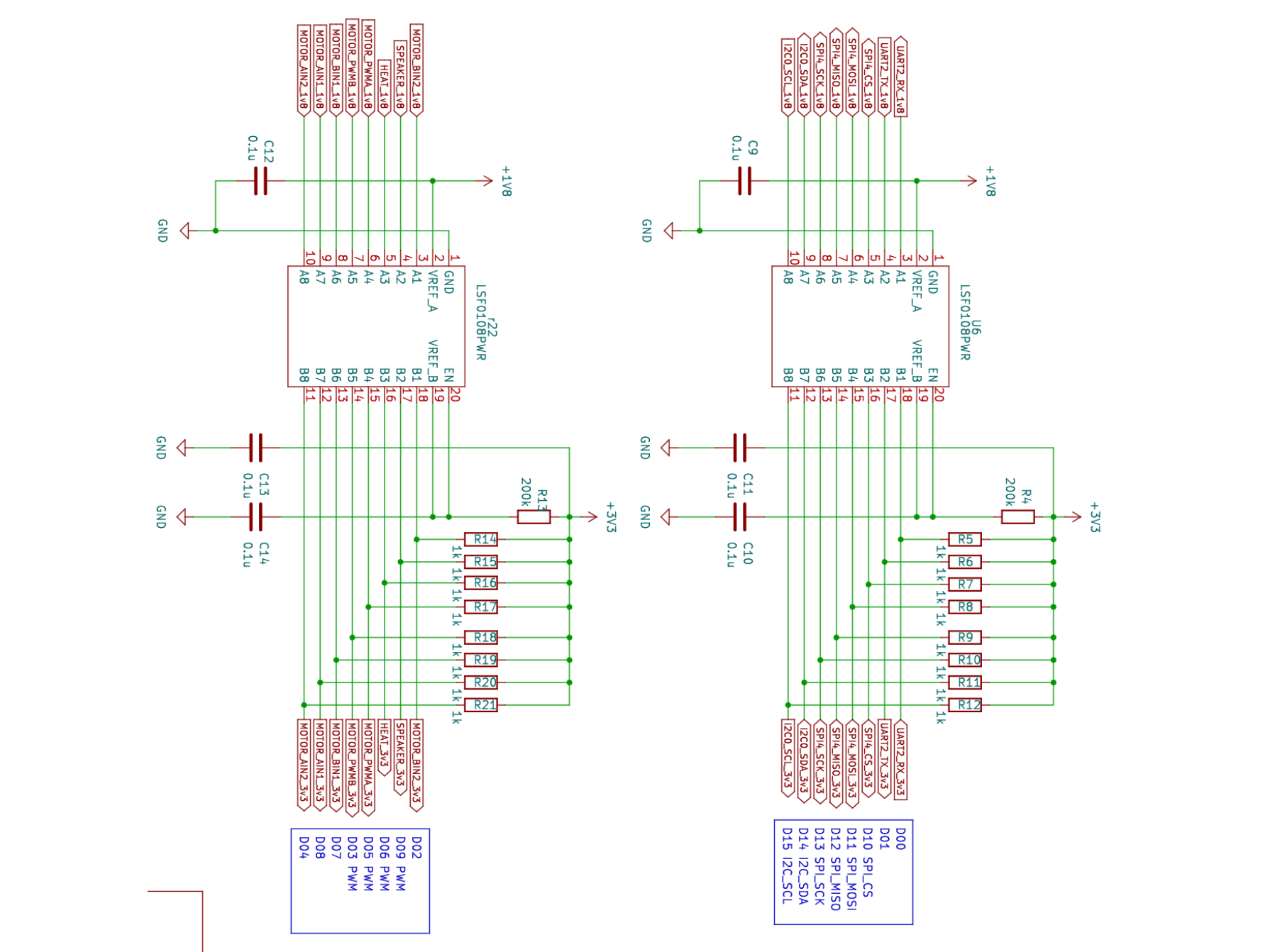 今回使用したセンサ類は3.3Vで駆動するため、電圧レベル変換ICを搭載しています。
