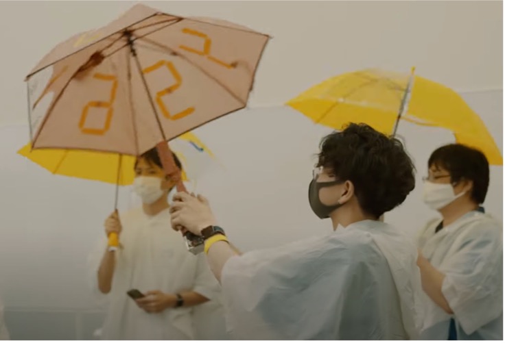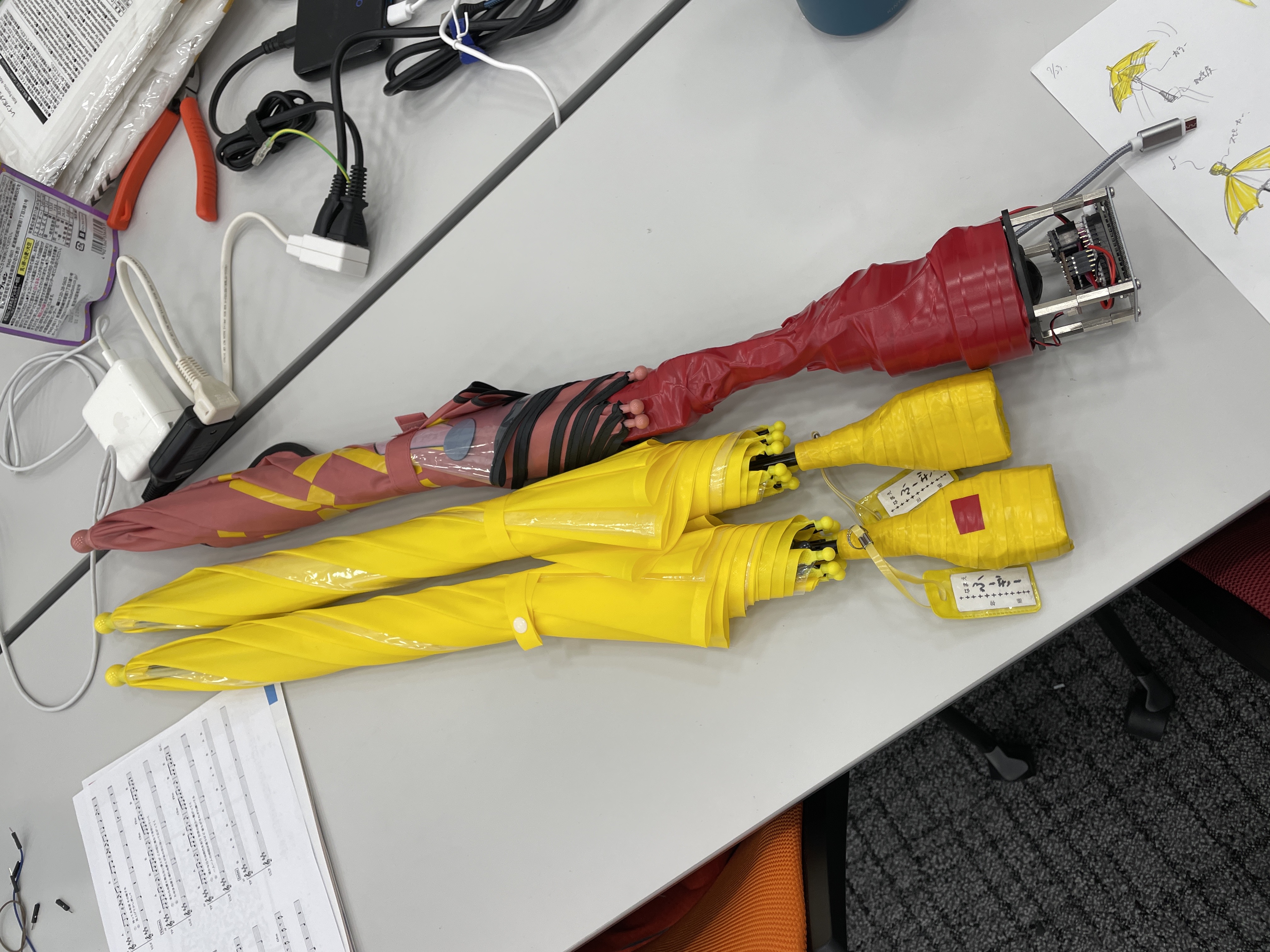 演奏しない時は「閉じて」小さくなり、演奏する時は大きく「開く」ことで演奏前と演奏中の楽器のビジュアルが大きく変化するという傘の持つ特徴を活かした楽器となっています。