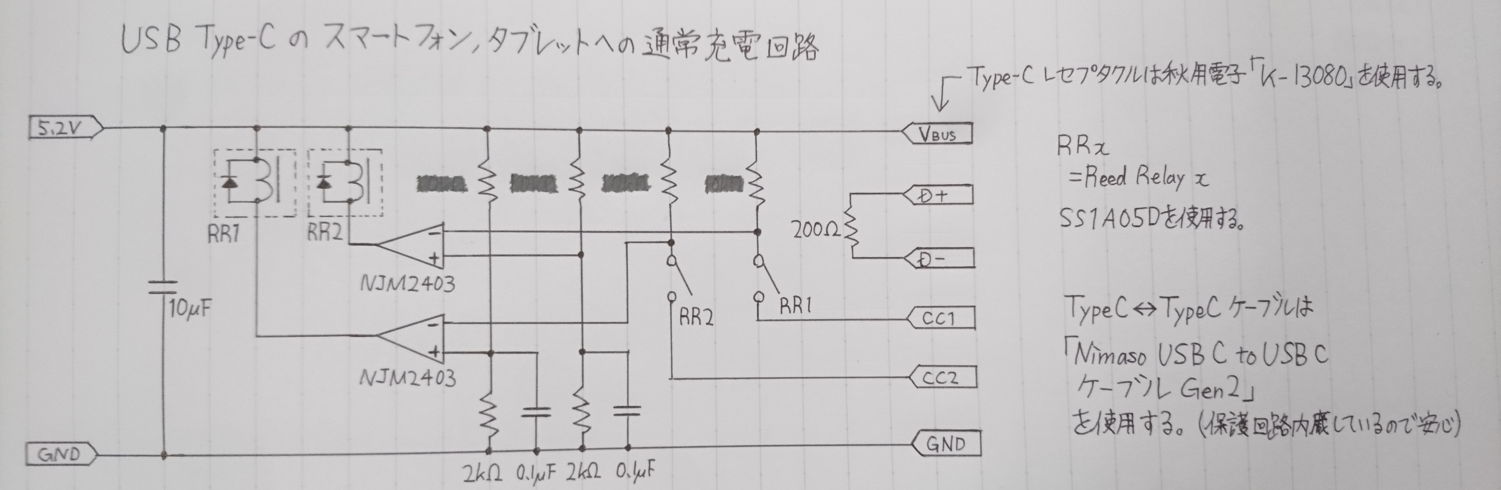 そんなUSB Type-Cを従来のType-Aのようにスマートフォンやタブレットへの充電出来るような回路を自分なりに考えてみたので少し紹介します。