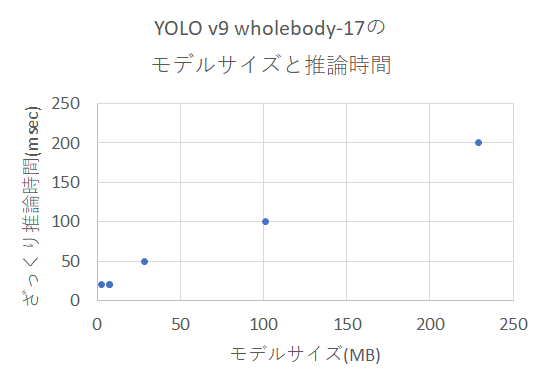推論時間はバラツキが大きいのですが、ビデオ入力した際に比較的安定している瞬間の値をざっくり読み取っています。